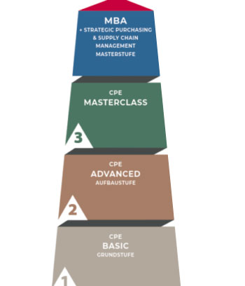 Das auf drei Qualifikations-Stufen aufgebaute, berufsbegleitende „Certified Professional Purchasing Expert“ Programm vermittelt das in der Praxis erforderliche Expertenwissen im Einkauf, grundlegende Aspekte des Supply Chain Managements sowie umfassende persönlichkeitsbildende Aspekte. Seminarreihen für Recht und Betriebswirtschaft vervollständigen das anspruchsvolle Programm.